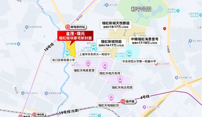 :项目地处虹口内环内,毗邻瑞虹新城商圈,坐拥太阳宫、月亮湾等顶级商业配套。交通极为便捷,10号线邮电新村站上盖,直线公里,尽享城市核心资源。周边直线个地铁站,轨道交通发达。